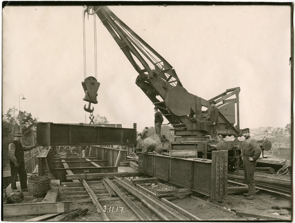 Titel: Stockholm Västerås Bergslagen, SWB viadukten under byggnad vid Tomteboda.