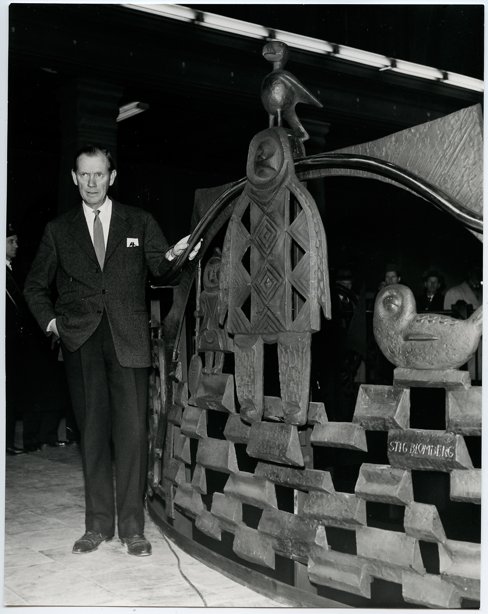 Svenska Järnvägsmannaförbundets 100-årsgåva har utförts av skulptör Stig Blomberg. Räcket runt "hålet" i centralstationen.