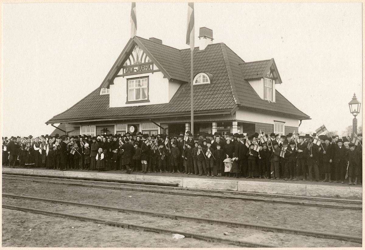 Vy vid Dala-Järna. Hette tidigare Uppsälje.Stationshuset uppfördes 1902. Några större ombyggnadsarbeten har sedan dess ej ägt rum