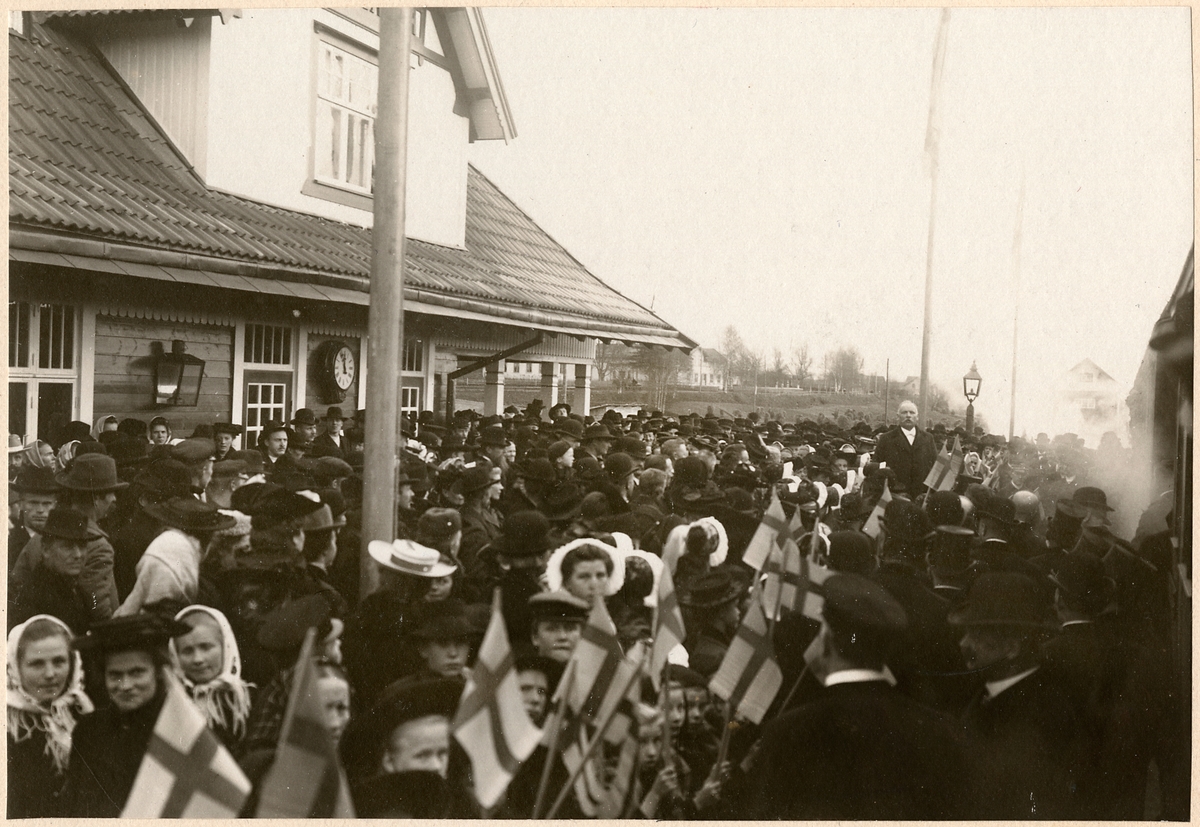 Vy vid Dala-Järna. Hette tidigare Uppsälje.Stationshuset uppfördes 1902. Några större ombyggnadsarbeten har sedan dess ej ägt rum