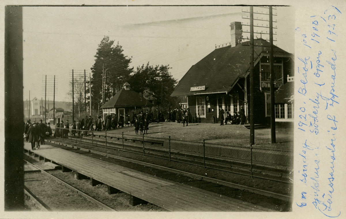 Uttrans station en söndag 1920 besökande till Söderby sjukhus.