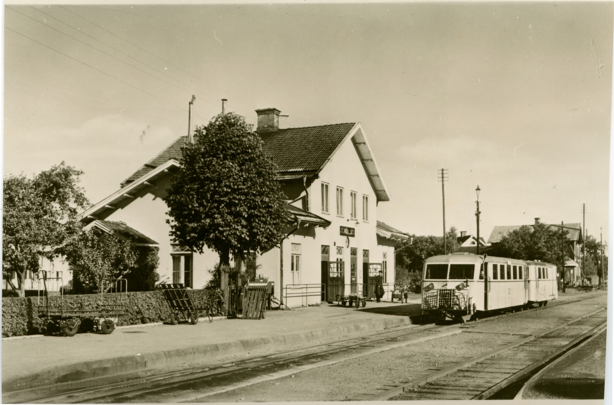 Station med smalspårigt Hilding Carlsson motorvagnståg.