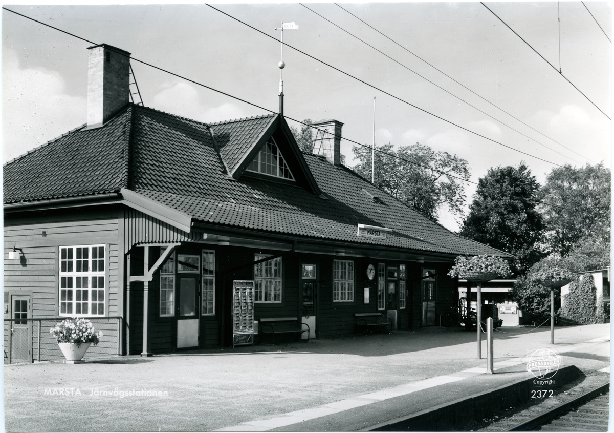 Station, utmed linjen Stockholm-Uppsala, uppförd 1876. Varuautomaten vid stationshuset innehöll både choklad, frukt och tobak.