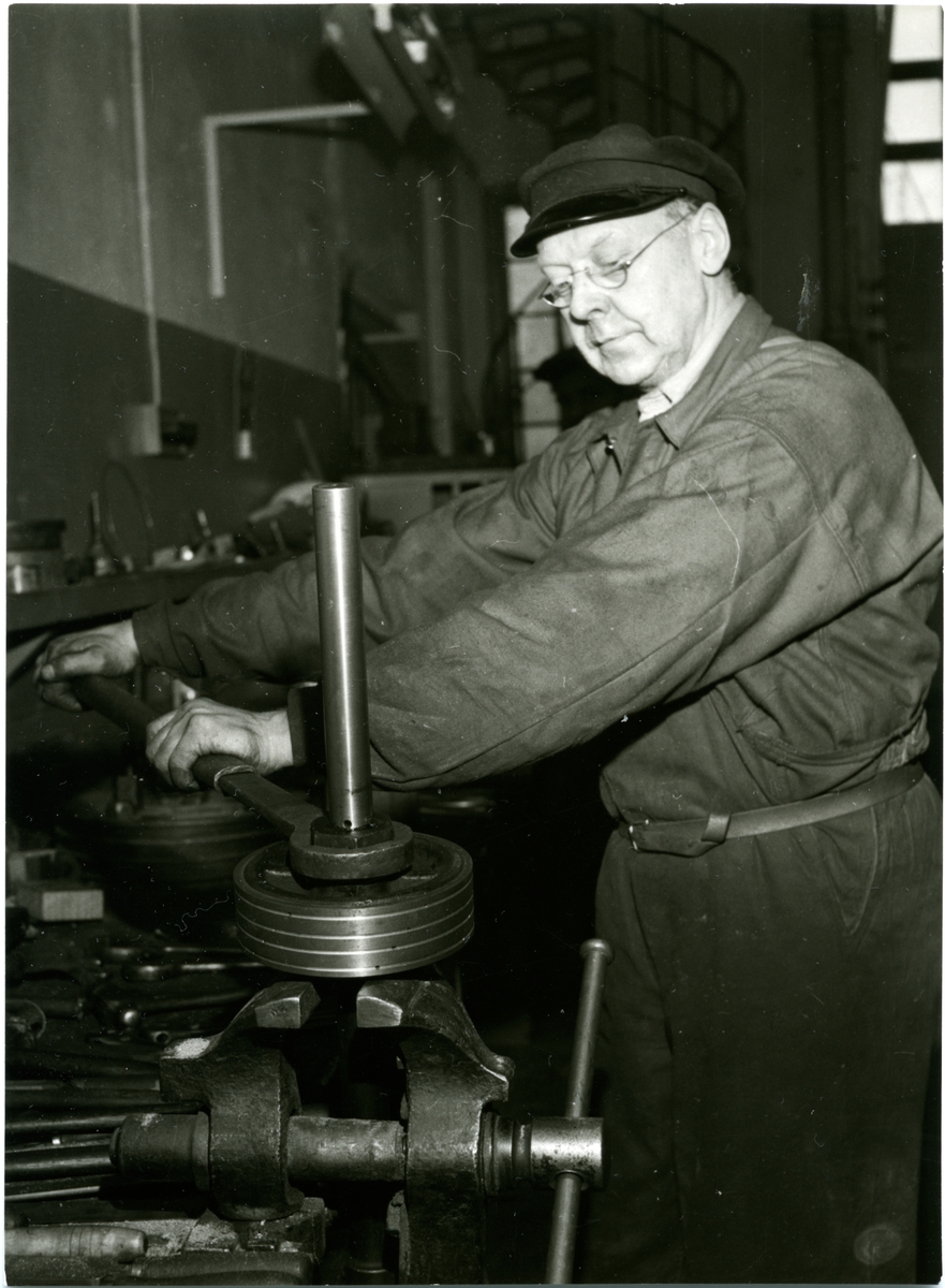 Verkstadsarbetare Johan Jansson vid huvudverkstaden i Mörby