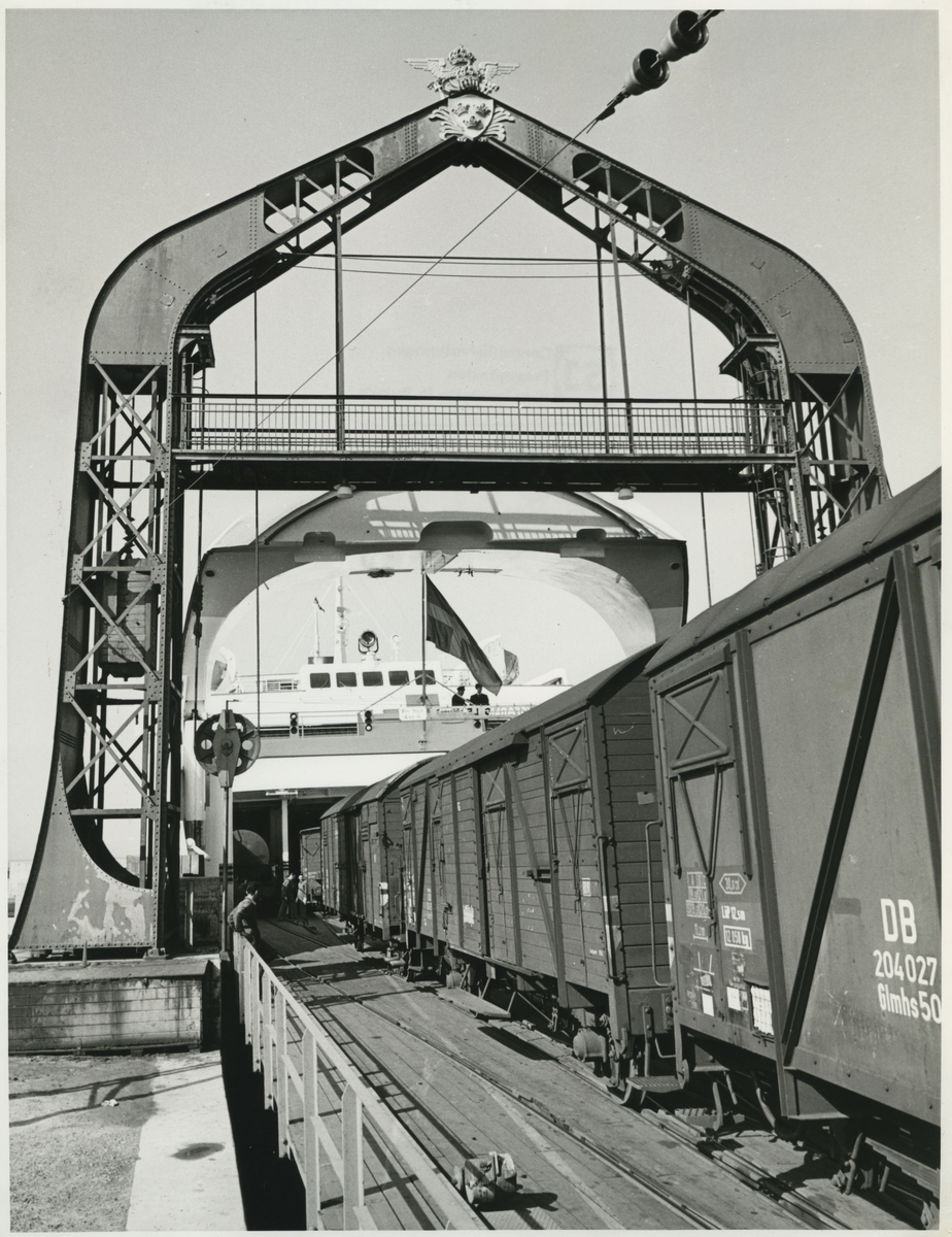 Lastning av godsvagn på färjan i Trelleborgs färjeläge. DB Glmhs 204027.