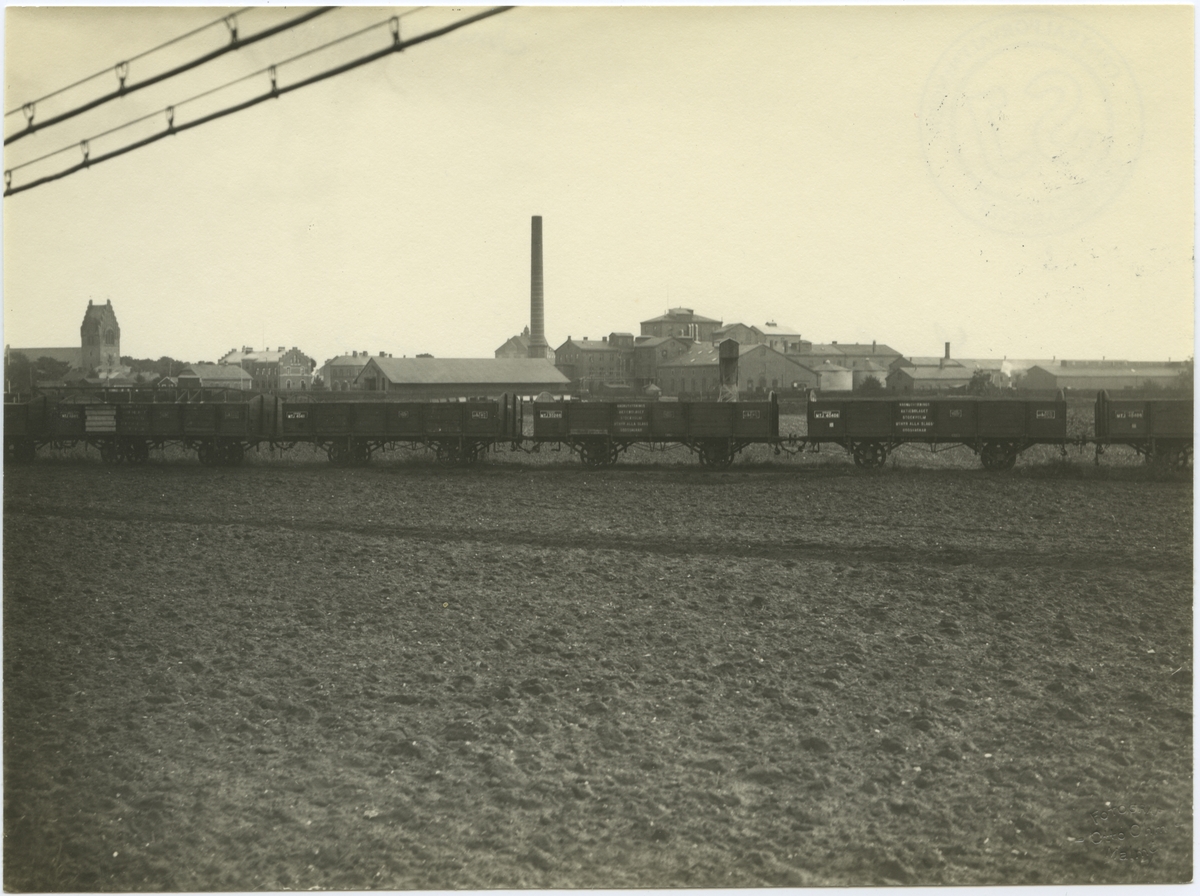 Sockerfabriken i Trelleborg. Malmö Trelleborgs Järnväg, MTJ godsvagn 40411, MTJ godsvagn 30299, MTJ godsvagn 40406, MTJ godsvagn 40409.