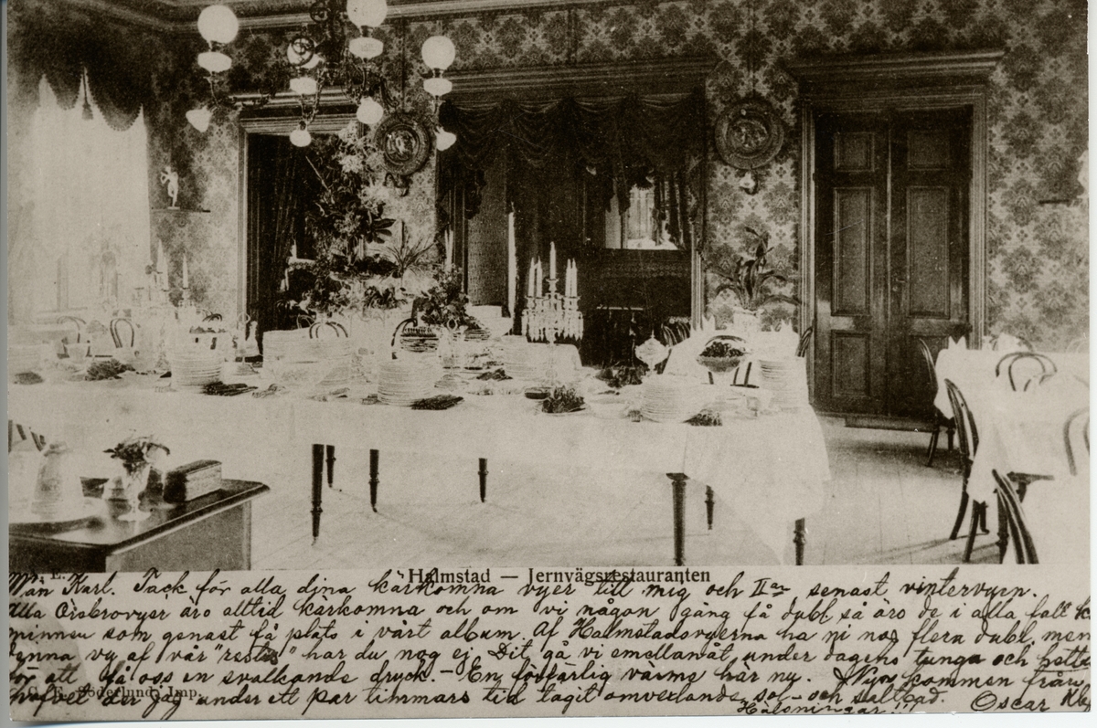 Matsalen i Halmstads järnvägsrestaurang omkring år 1900.