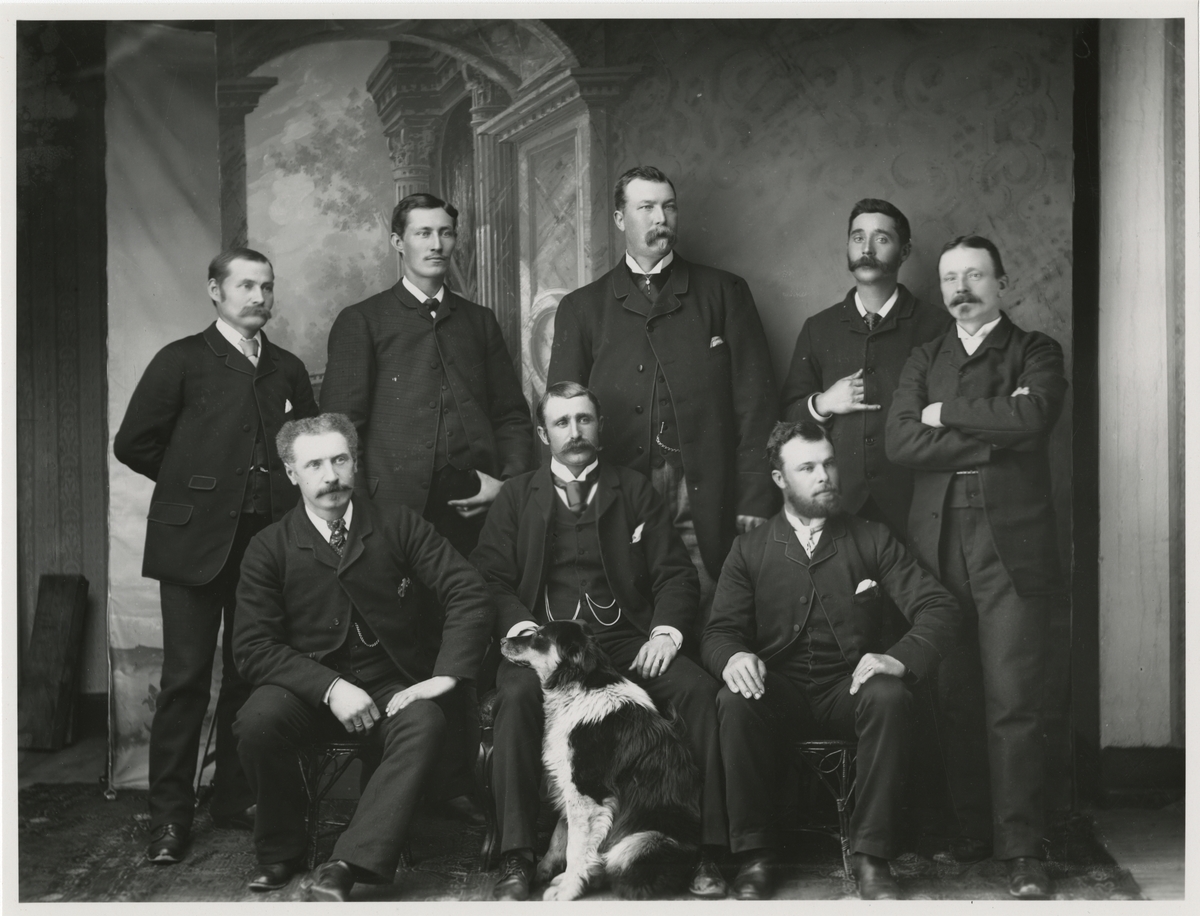 Engelsmännens maskinuppsättare på svartön, från Vänster stående 2. Högberg och 3. Robertsson, Sittande 1. Mr Fergusson och 3. Mr Kersch.