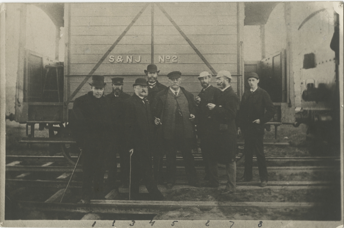 1. Konsul Sundström, 2. Doktor Björkman, 3. Överste Oxehuvud, 4. Rektor Fredholm, 5. Borgmästare Hedström, 6. Ingenjör Millet, 7. Ingenjör Mann ( Williams?), 8. Ingenjör Broxup.