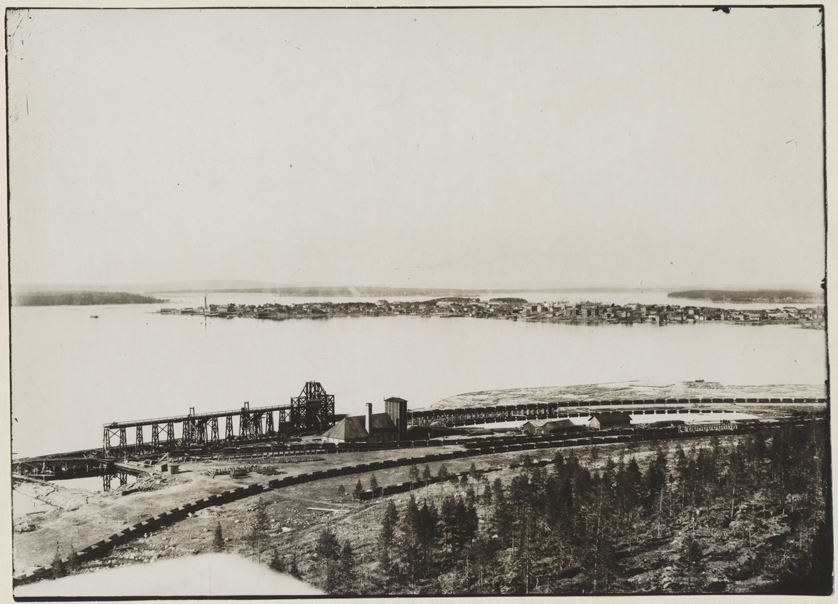 Elevatorn vid järnvägsanläggningen. I bakgrunden på udden syns Luleå stad efter branden 1887.