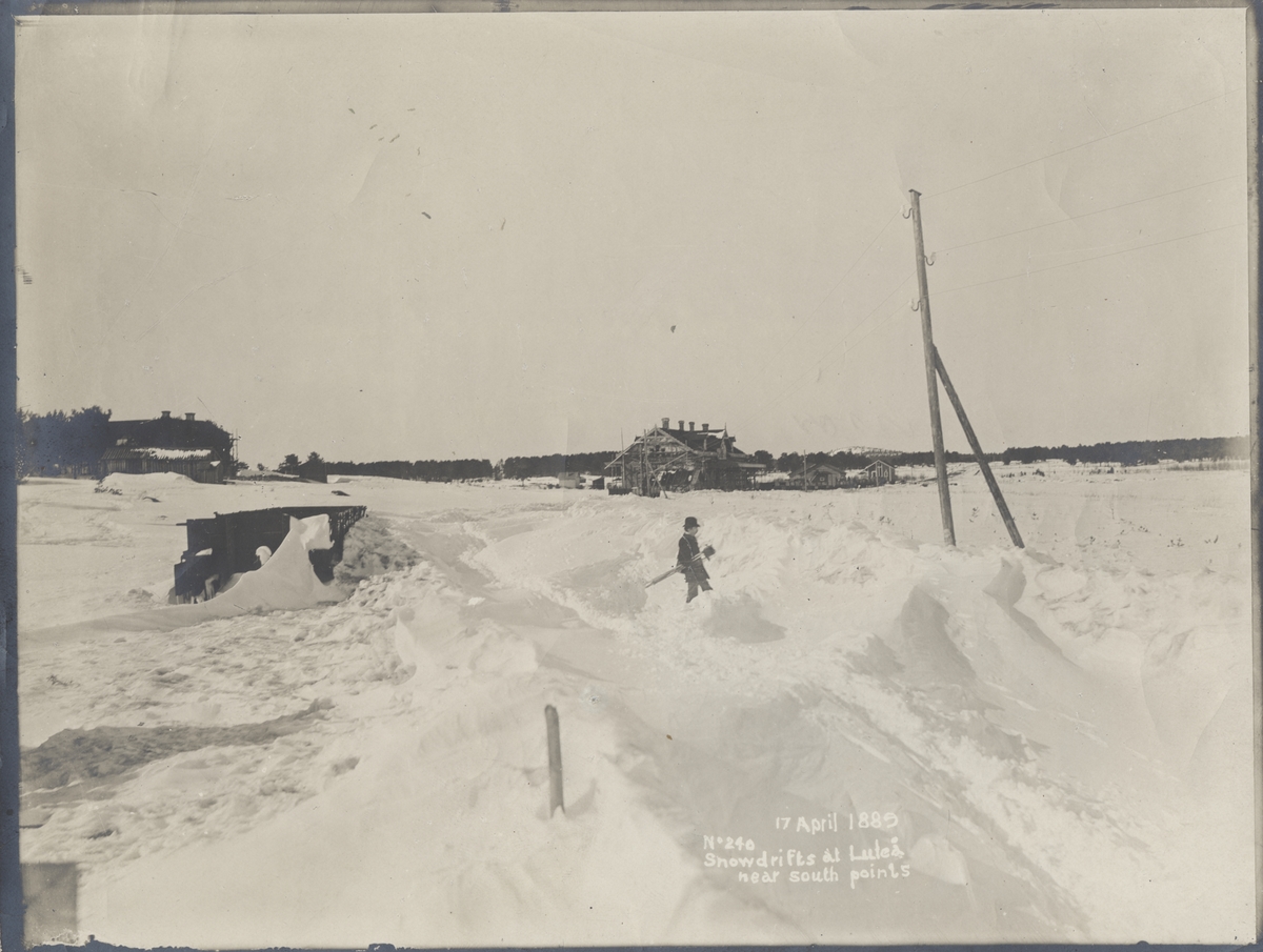 Text på Framsida:" 17 april 1889 No 240 Snowdrifts at Luleå near south point."