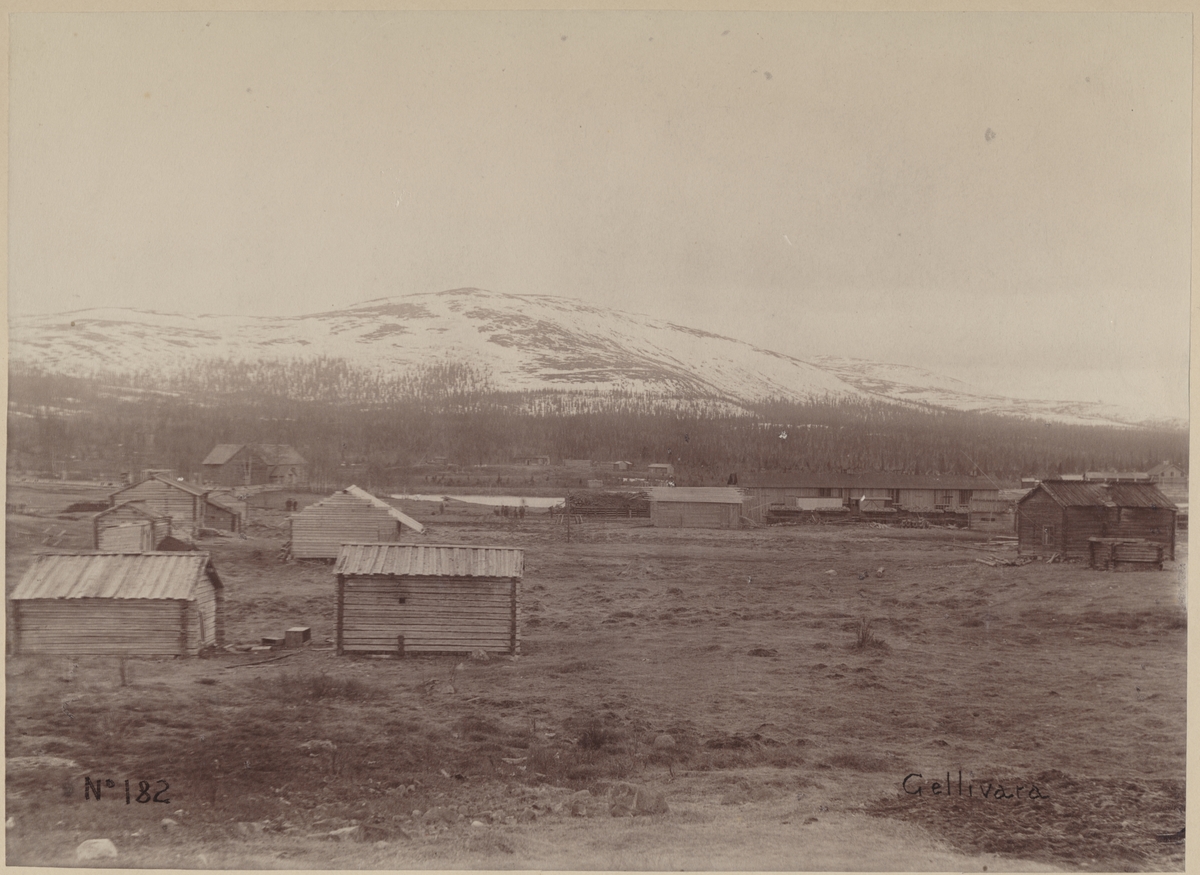 Gällivare med Dundret nedaför till vänster syns Lappkyrkan .