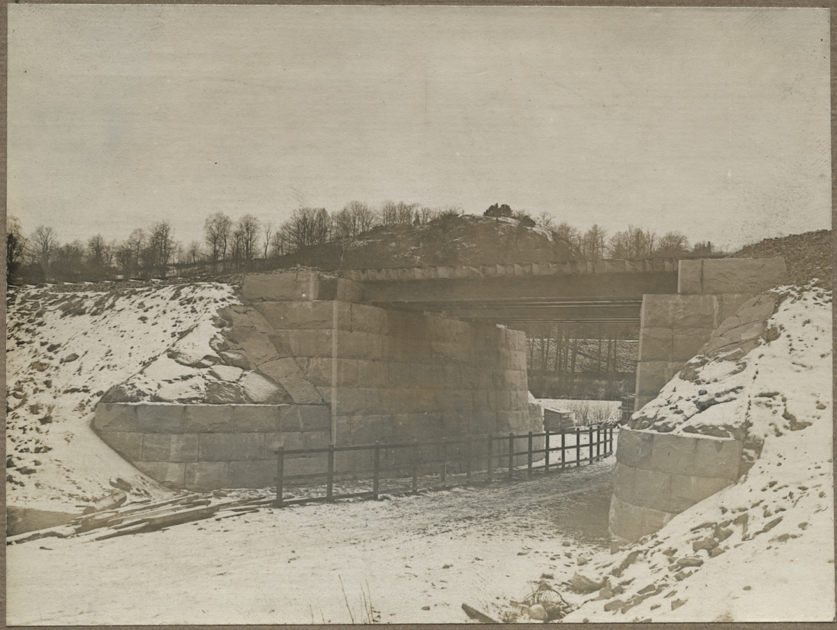 Dubbelspårsbanbyggnad Göteborg - Alingsås. Öjareds vägport någon gång mellan år 1911-16.