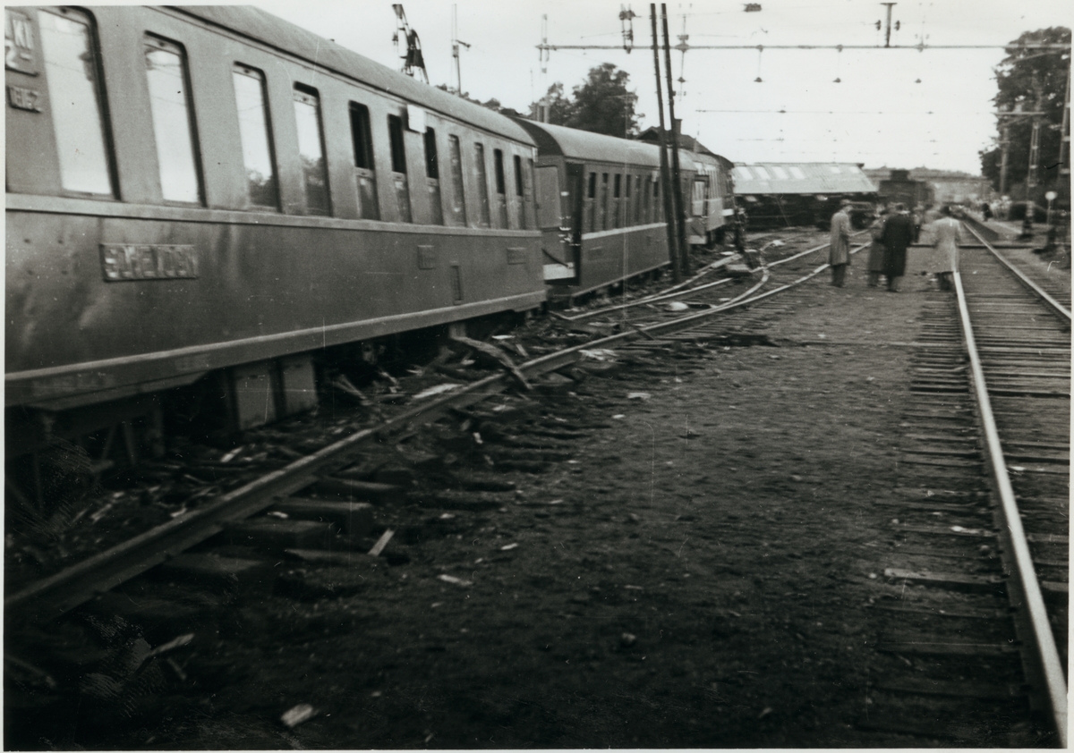 Olyckan i Pålsboda 1951. Urspårade Norges Statsbaner, NSB sovvagnar.