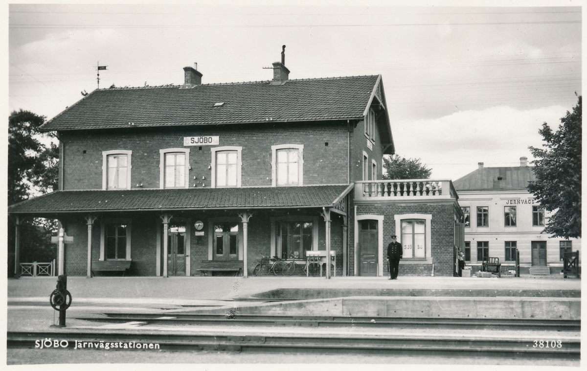 Vy på Sjöbo stationshus. Mekanisk växelförregling
