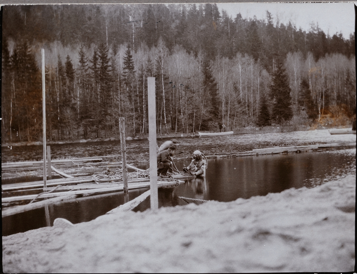 Dykare i arbete under bärgningen av Göteborg - Borås Järnväg, GBJ K 5 i närheteten av Hultafors.