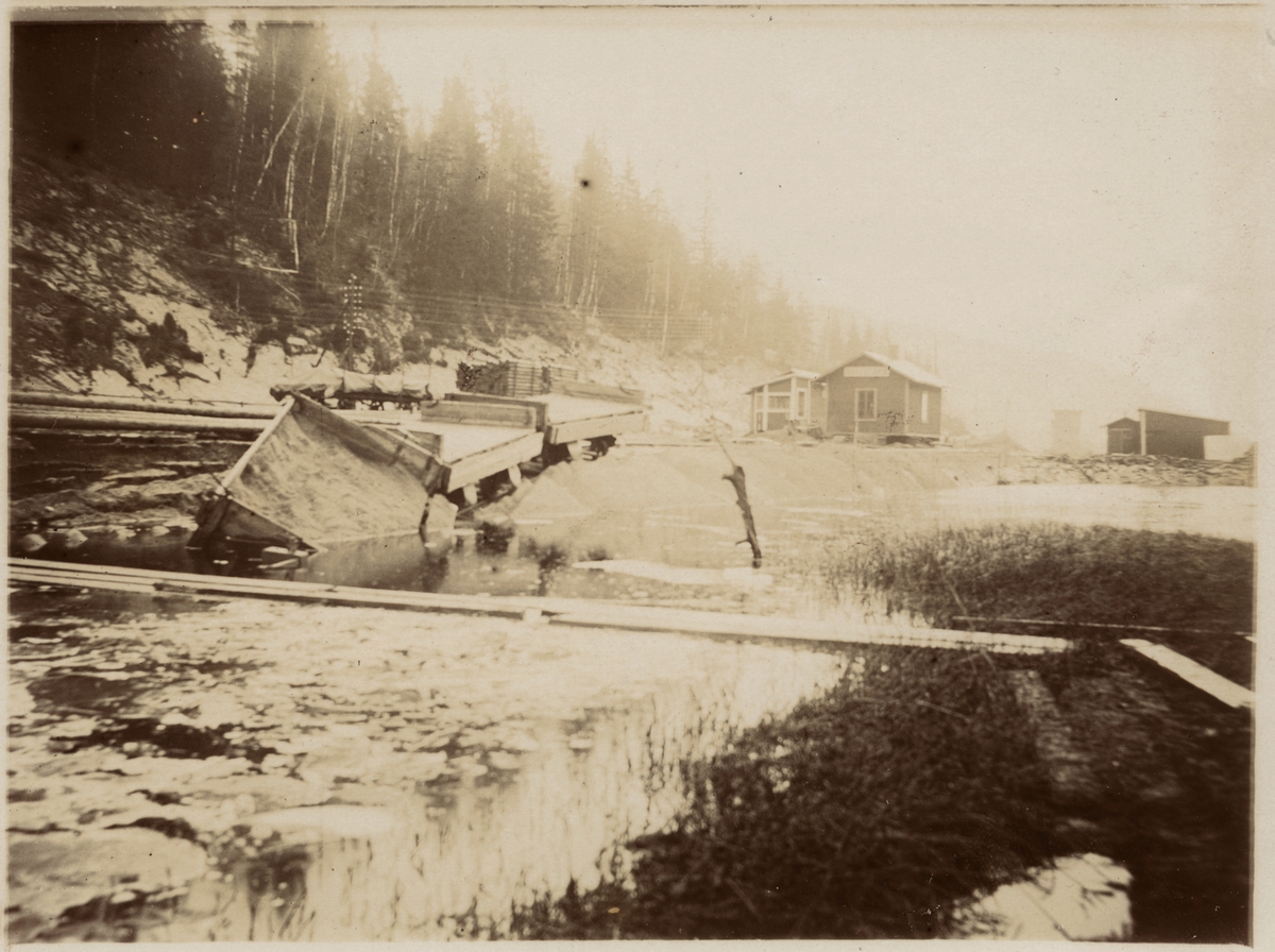 Tågolycka i Hultafors där Göteborg - Borås Järnväg, GBJ K 5 gick i vattnet och sjönk under arbete på bangården.