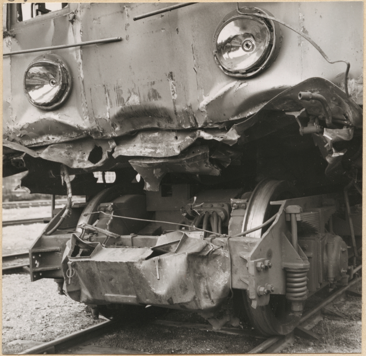 Statens Järnvägar, SJ Bk 748 skador efter kollision i Södertälje 1958.