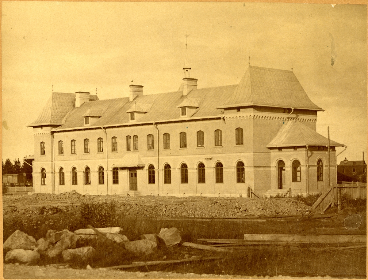 Gävle - Dala Järnväg, GDJ, Storvik station klar byggd sett från baksidan.
