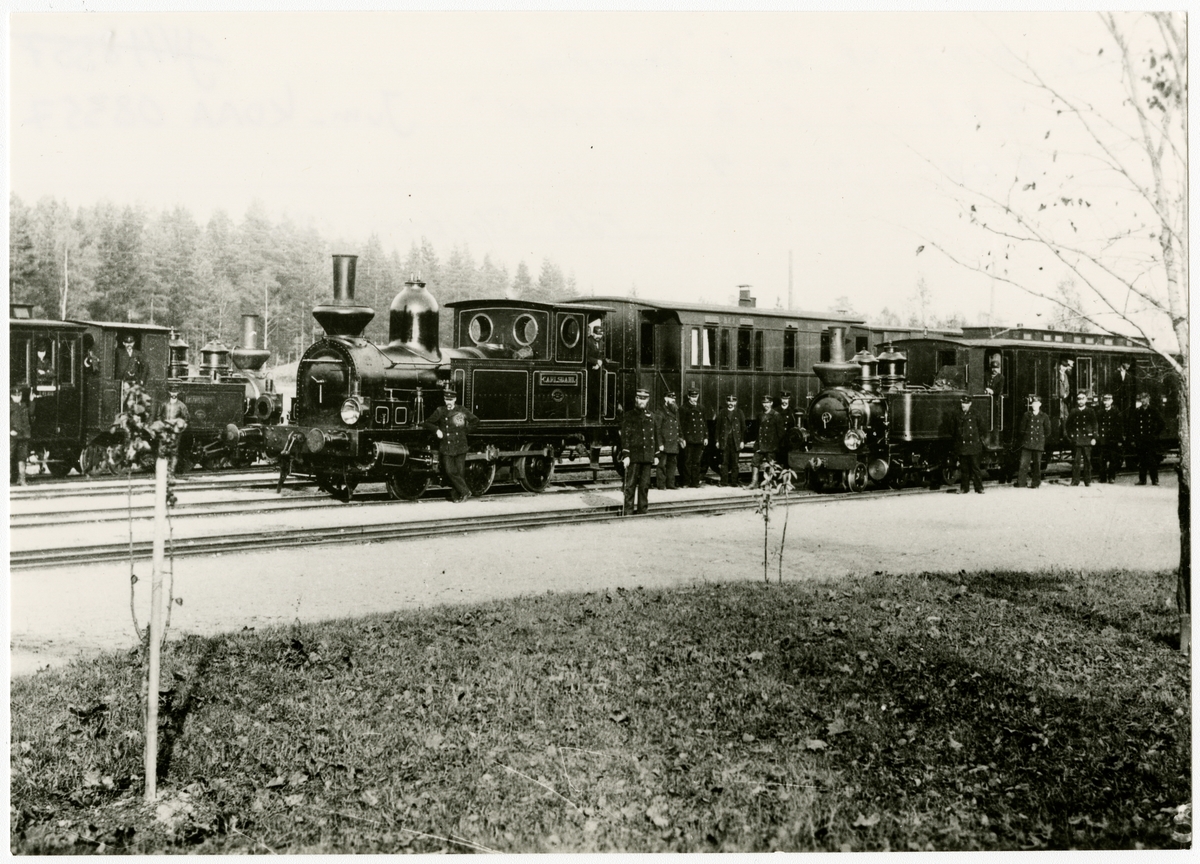 Bredsjö - Degerfors Järnväg, BDJ, Från vänster BDJ lok 1 " Degerfors " NKJ lok 6 " Carlsdahl " BDJ lok 4. Smalspåret närmast i bild.