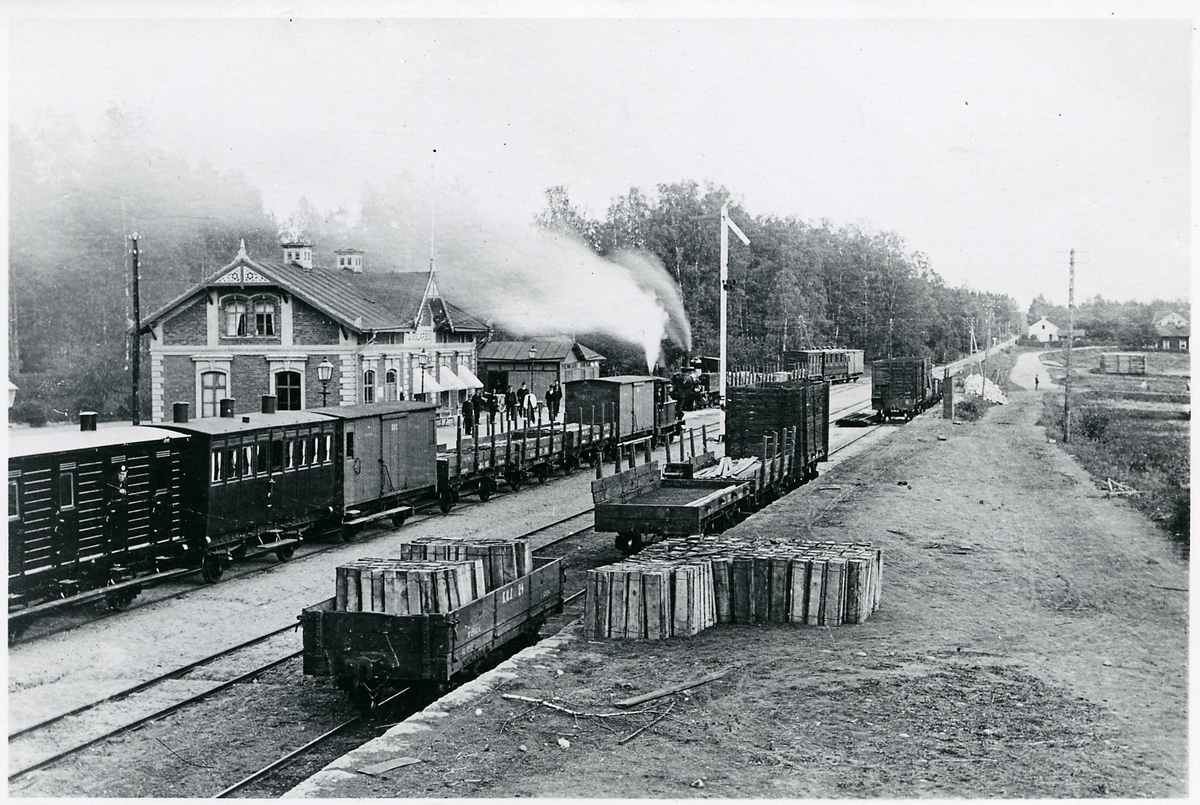 Tågmöte i Gisslarbo. KUJ godsvagn 21 (Köping-Uttersbergs Järnväg).
