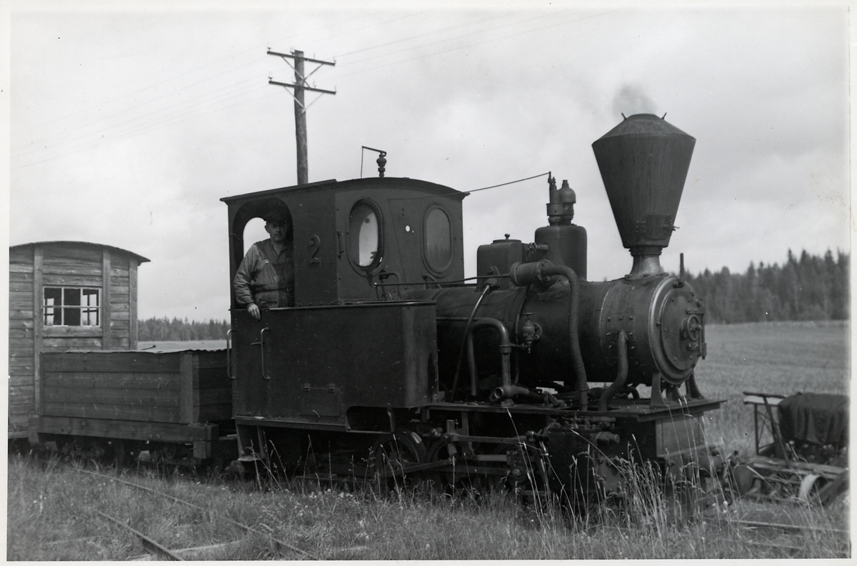 Lindfors Bosjöbanan, LBB lok 2 "Lotta" med lokförare Bengtsson.