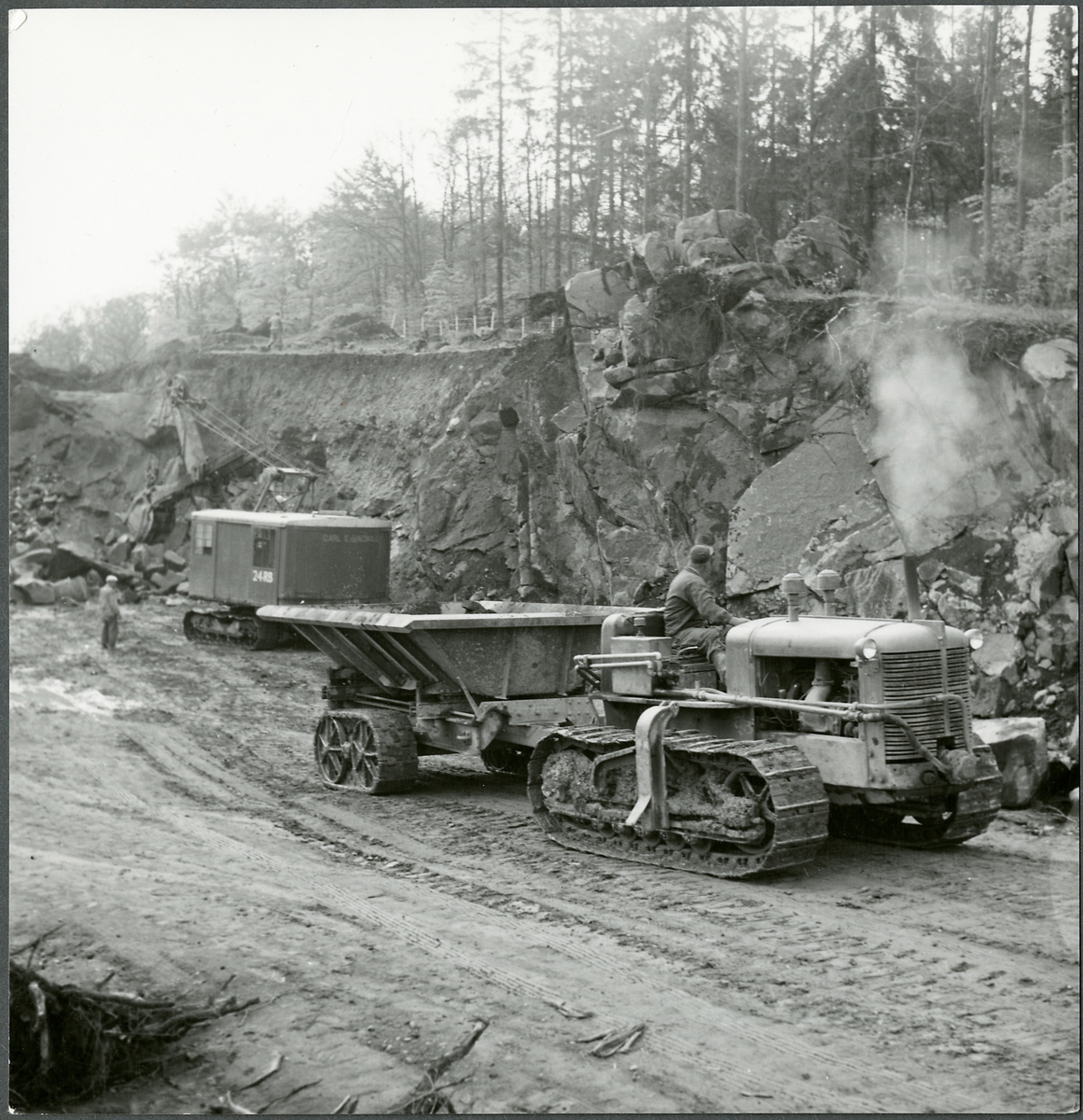 Bandtraktorn vid järnvägsbygget vid Karlshamn.