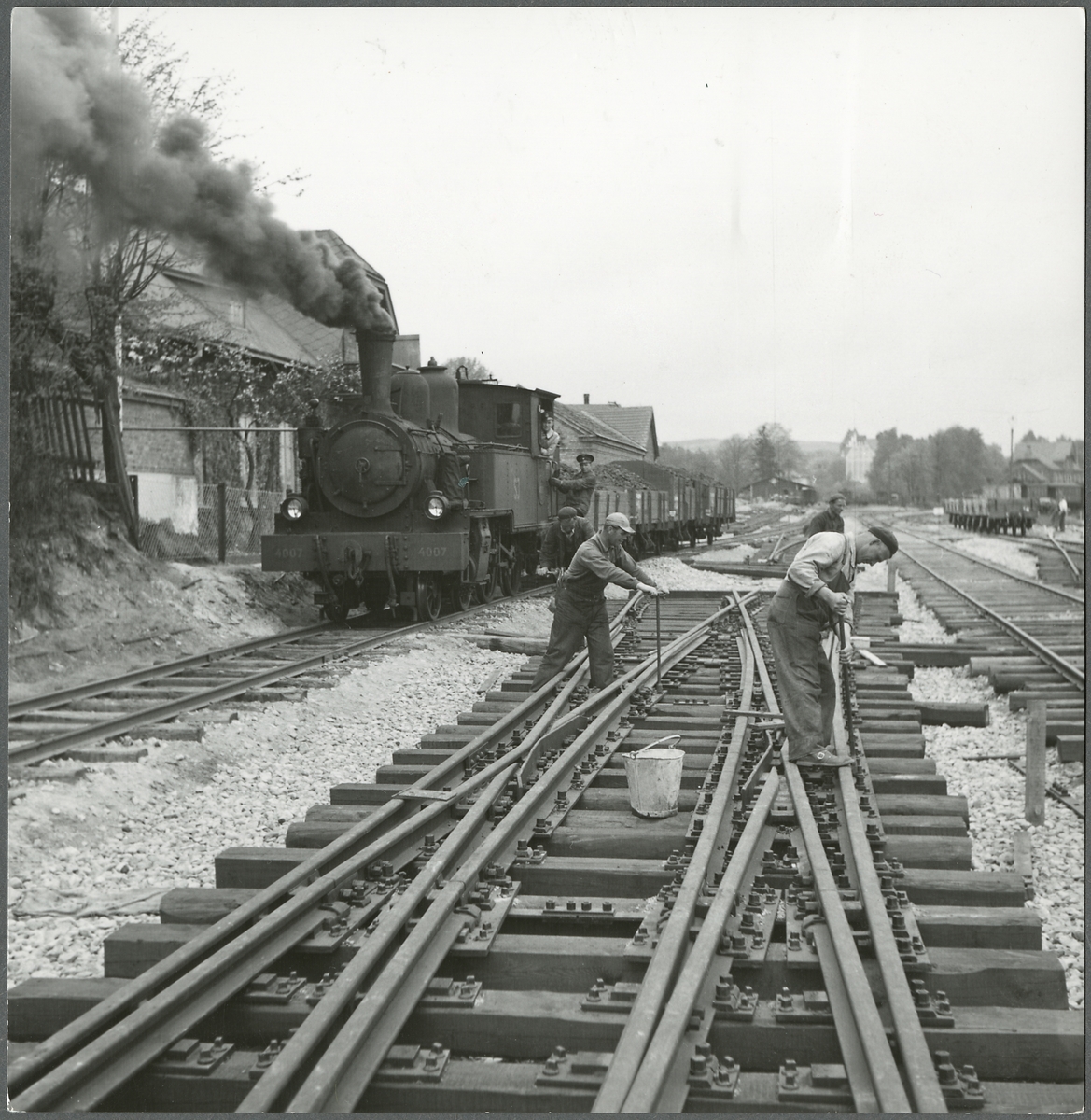 Järnvägsbygget med ångloket Statens Järnvägar, SJ w4t 4007 på linjen mellan Kristianstad-Karlshamn.