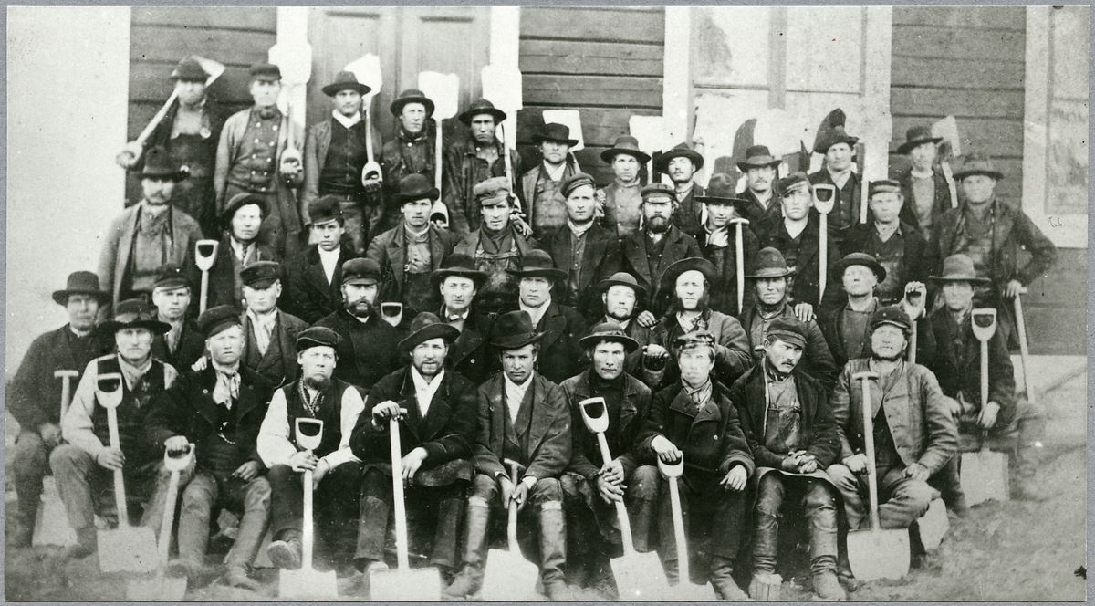 Gruppfoto av banarbetare på Bergslagernas Järnväg, BJ, vid Ställdalen.