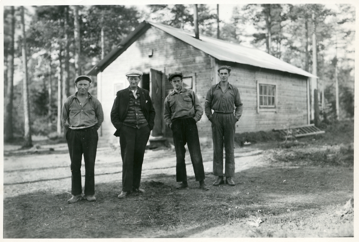 Titel: Rallare framför bostaden vid Borås-Jönköpings Järnväg.