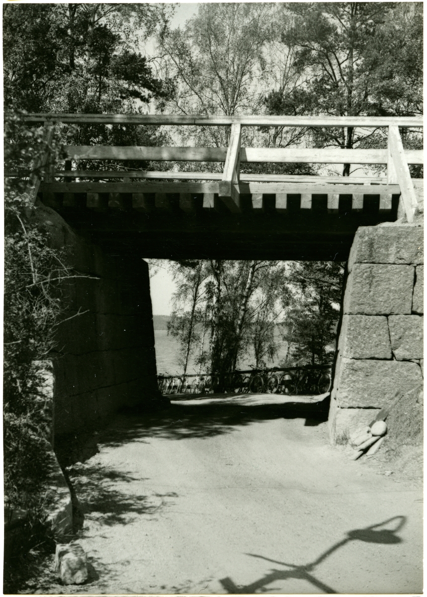Mitt för stationen finns en viadukt och i två av dess massiva stenar finns inhugget dels årtalet 1859, dels en kunglig krona.