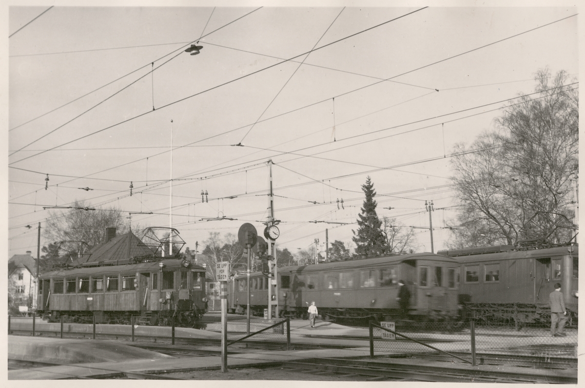 Till vänster elmotorvagn 14 ombyggd till 1500 volt 1946, släpvagn sedan 1953