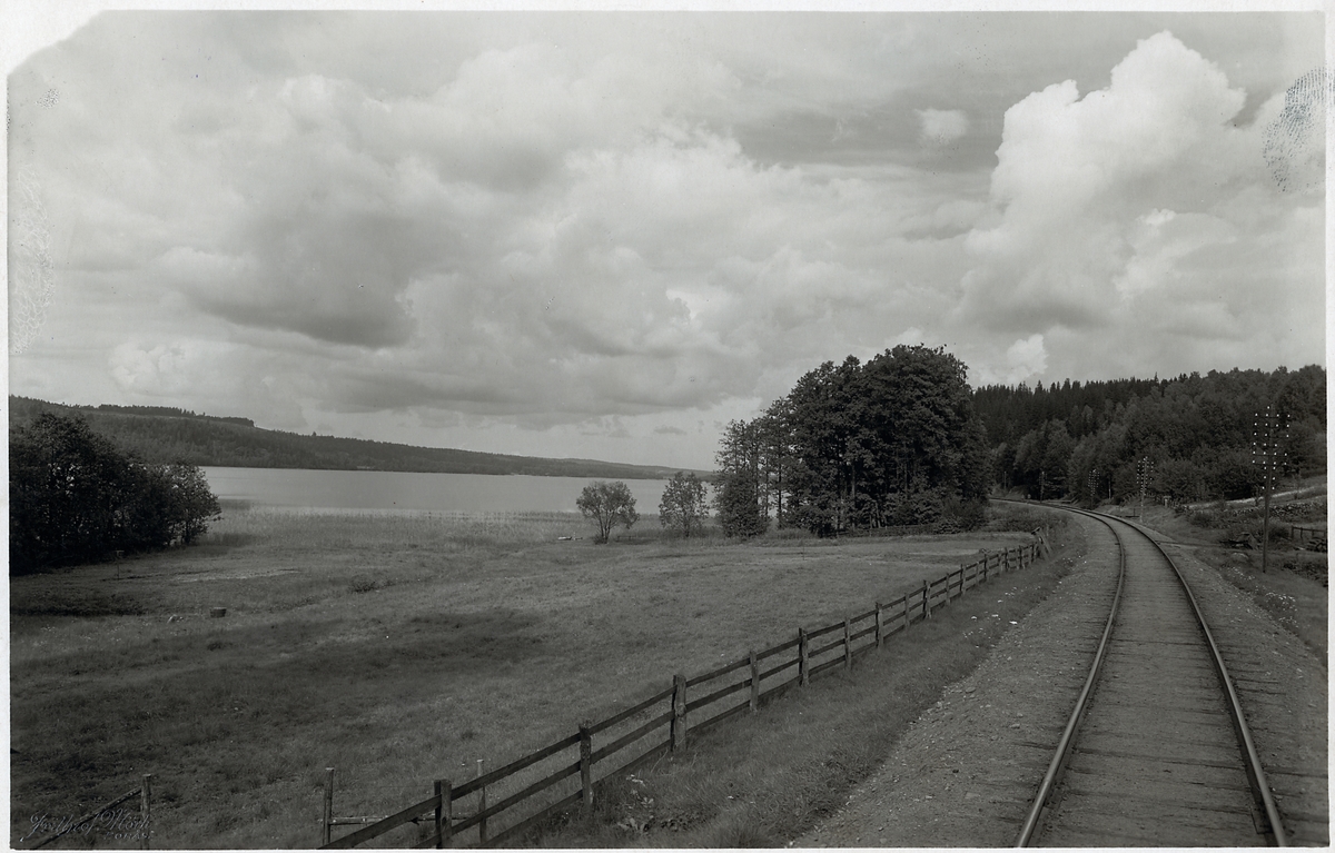 Utsikt från järnvägen över Öresjö vid Skogsryd.
