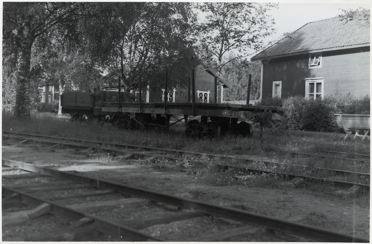 Ett par av Ågbanans godsvagnar och ett avsnitt av Ågs bangård.
