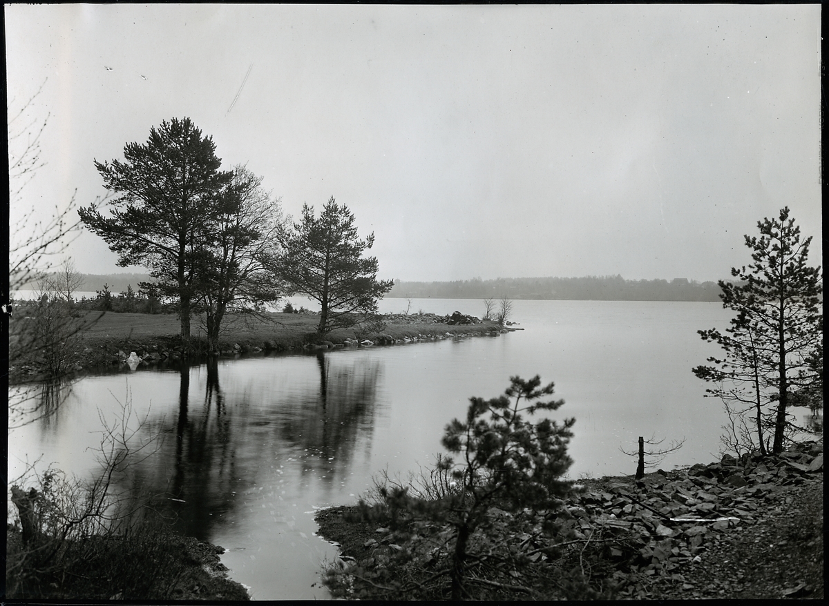 Hamnen vid Vinternäsets station. Mitt över sjön ligger Persberg. Yngen- Daglösens station.