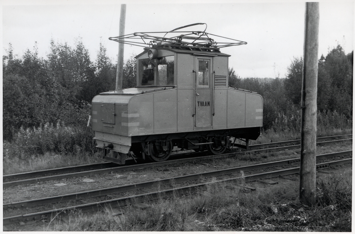 Industriloket på spåret i Robertsfors. Robertsfors k+a "Tvåan". Tillverkad av Asea nr. 179.