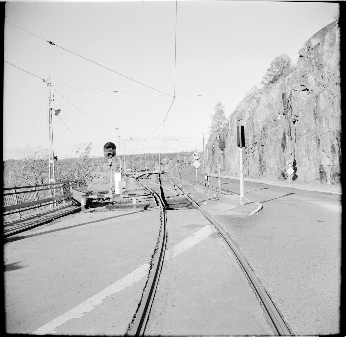 Vy över spårväg på Norra Kungsvägen vid Hersby.