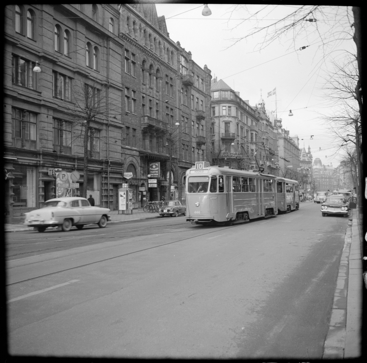 Aktiebolaget Stockholms Spårvägar, SS A25 444 "mustang" linje 10 Ropsten - Södermalm på Birger Jarlsgatan.