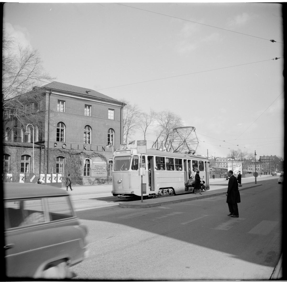 Aktiebolaget Stockholms Spårvägar, SS A25 411 "mustang" linje 2 Fredhäll - Karlaplan på hållplats Stadshuset.