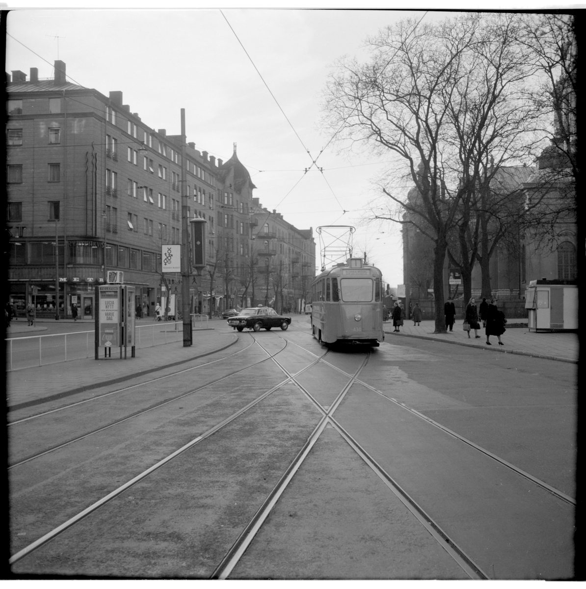 Aktiebolaget Stockholms Spårvägar, SS A25 430 "mustang" linje 1 Norrmalmstorg - Rosenlund vid Odenplan, infarten från väster.