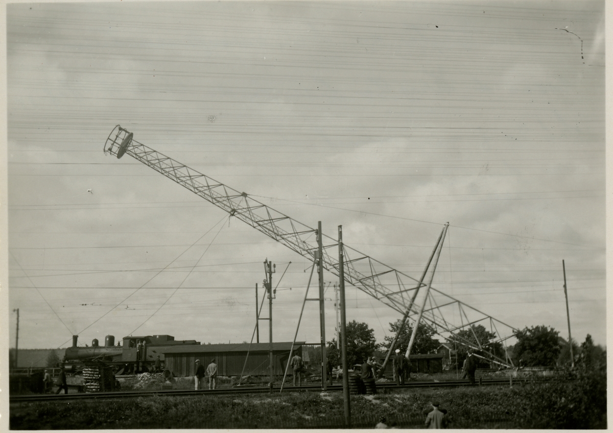 Resning av belysningsstolpe på Avesta Krylbo bangård.