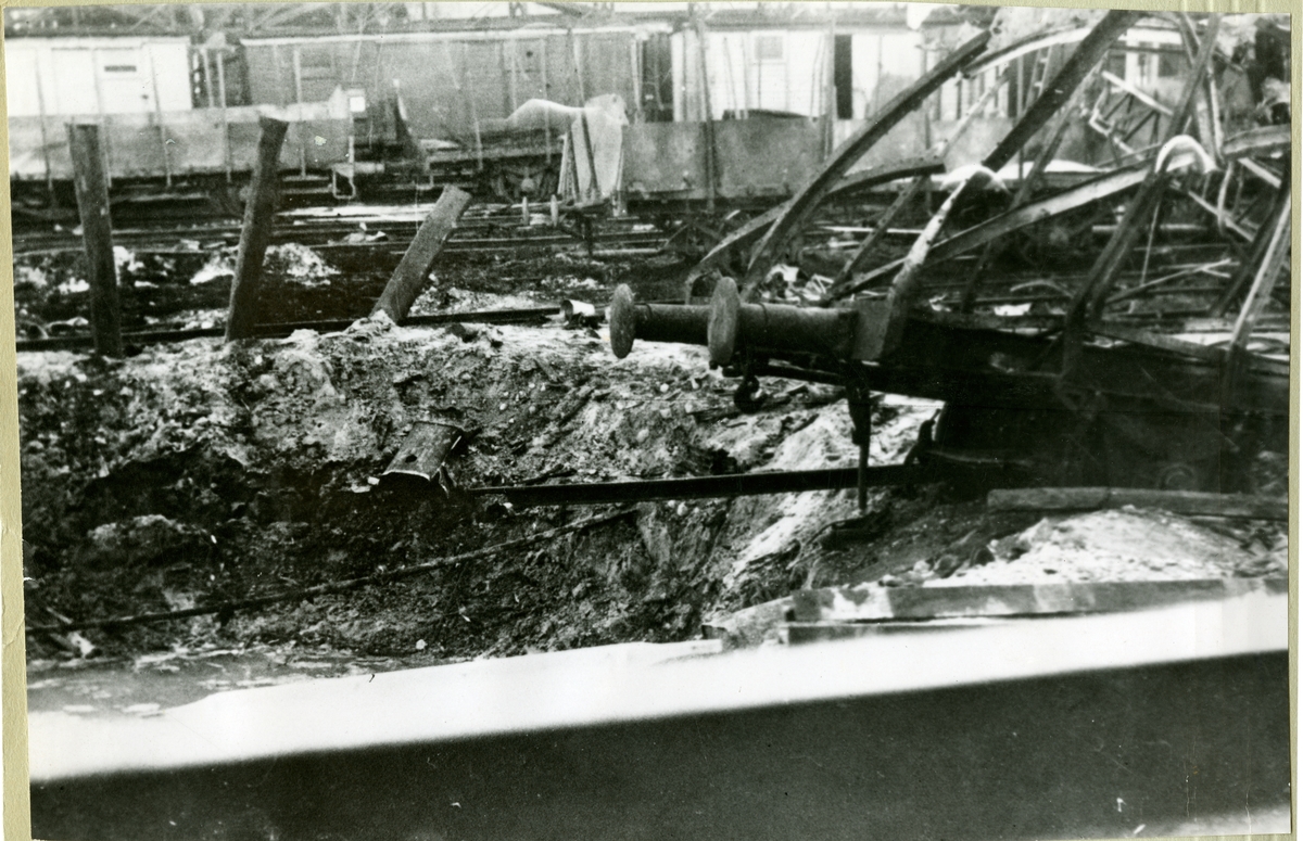 Eftermälet av explosionen av ett tyskt ammunitionståg på Avesta Krylbo station.
