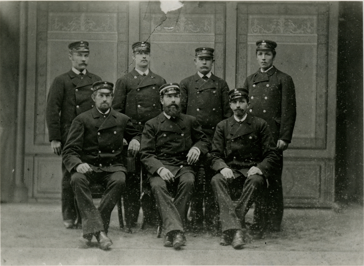 Nedre raden.Stationskarl Forsberg, Stationsförman Österlund, Stationskarl Höglund.