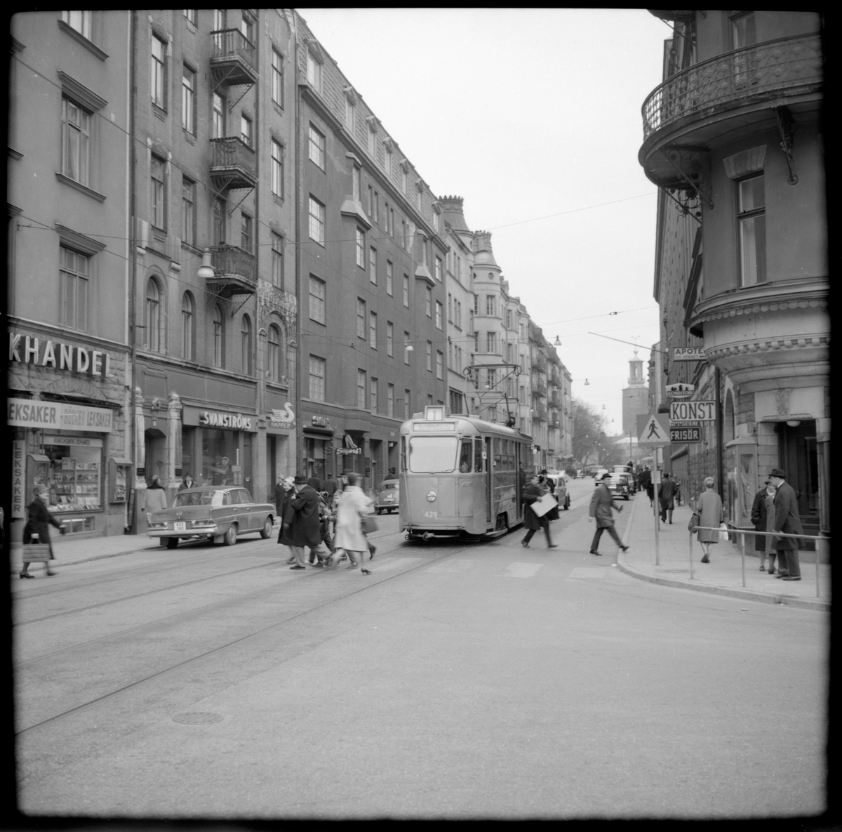 Aktiebolaget Stockholms Spårvägar, SS A25 429 "mustang" linje 1 Norrmalmstorg - Rosenlund vid hållplats Kungsholmstorg på Hantverkargatan.