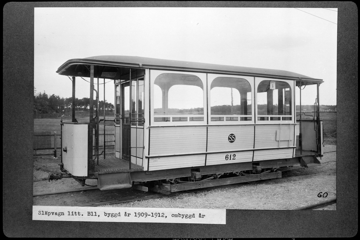 Aktiebolaget Stockholms Spårvägar, SS B11 612 byggnadsår mellan 1909-1912. Tidigare Stockholms Södra Spårvägsaktiebolag, SSB BC2 165, som hade öppna sidor sommartid. Vagnen är träbeklädd.
