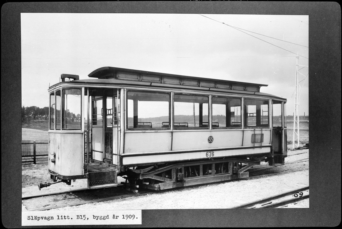 Aktiebolaget Stockholms Spårvägar, SS B15 676, byggnadsår 1909. Tidigare Stockholms Nya Spårvägsaktiebolag, SNS B7 271. Ursrungligt utseende, axelavståndet är 2,2 meter.