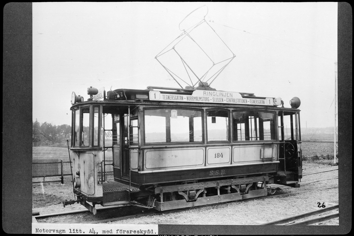 Aktiebolaget Stockholms Spårvagar, SS A4 184, före detta Stockholms Södra Spårvägsaktiebolag, SSB A1 14. Den trafikerade linje 1, Ringlinjen. Fotograferad vid Hagalund järnvägsstation.