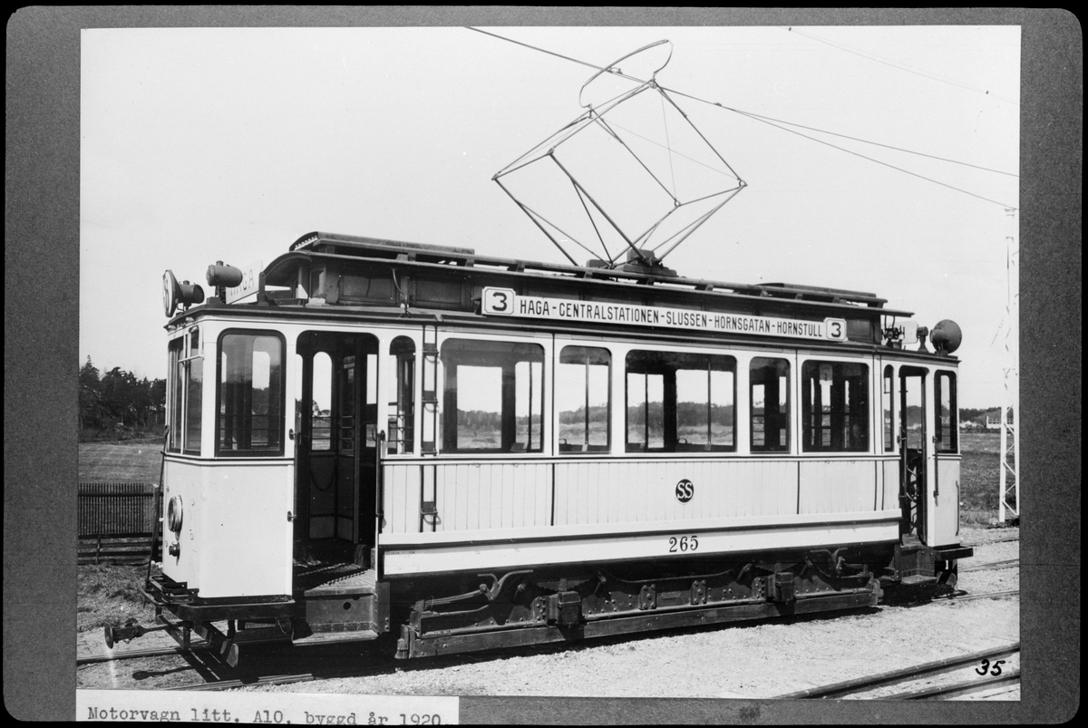 Aktiebolaget Stockholms Spårvägar, SS A10 265, linje 3, som gick mellan Haga och Hornstull. Fotograferad vid Hagalund järnvägsstation.