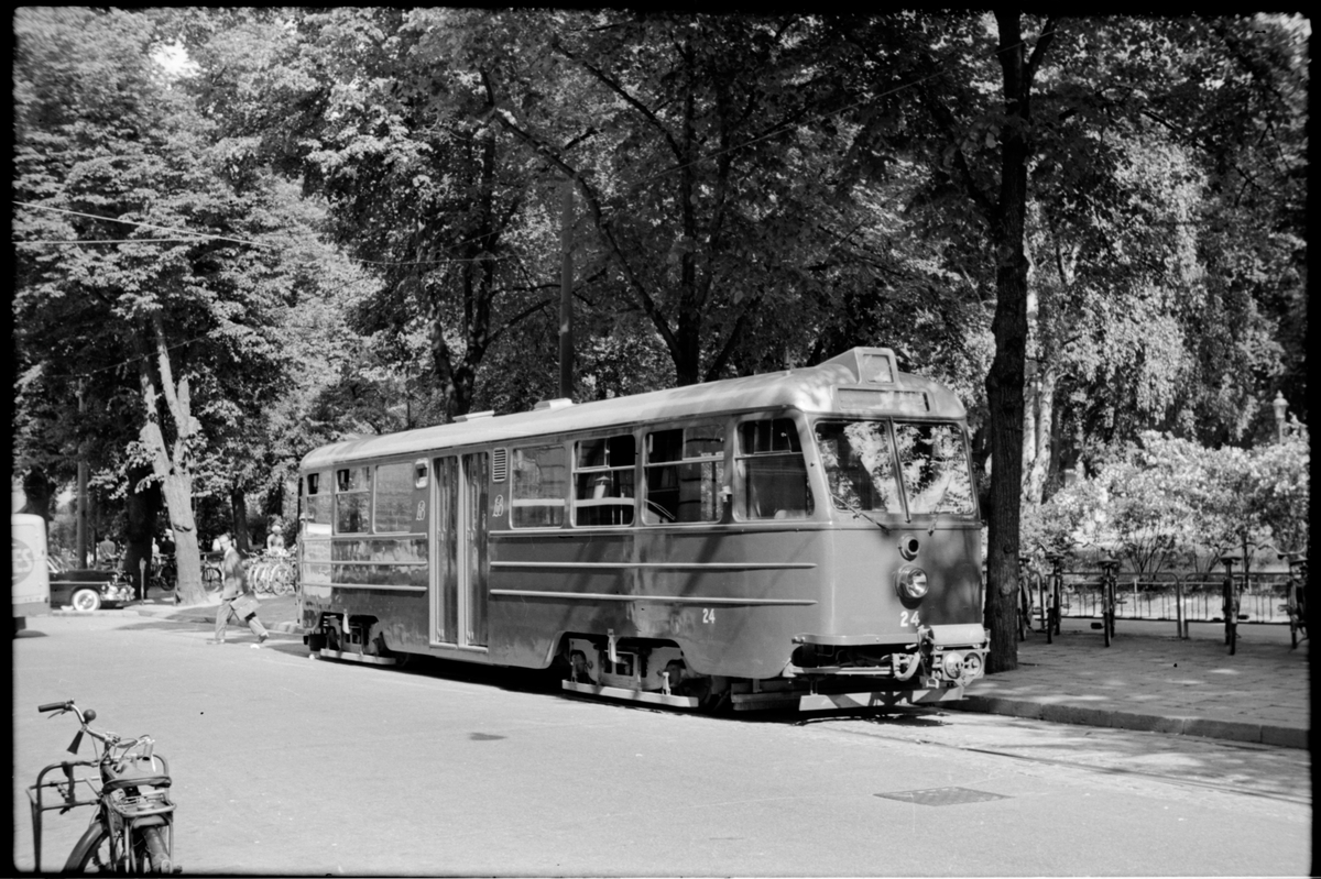 Trafik Aktiebolaget Stockholm Södra Lidingöns Järnväg, SSLidJ A24(A) 24 "ängbyvagn" vid Humlegårdsgatan.