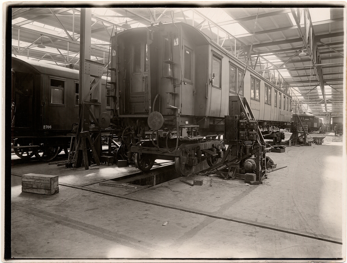 Montering av vagn på boggi med hjälp av vagnslyft.